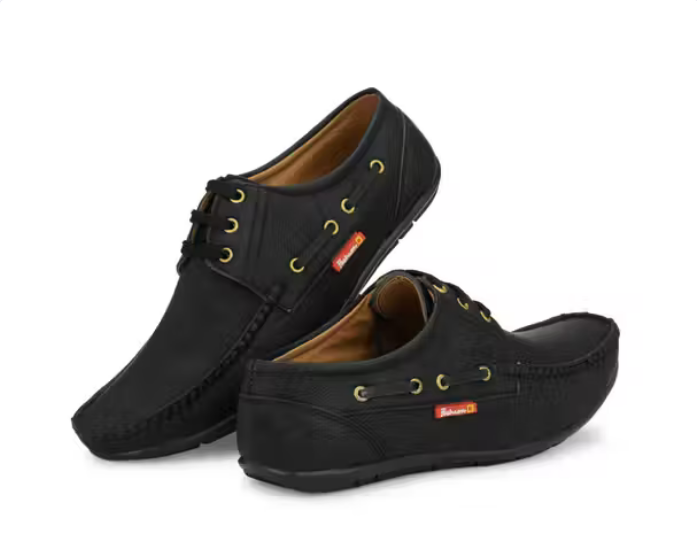 Name : Black Solid Shoes For Men Material : Syntethic Leather Sole Material : Rubber Fastening & Back Detail : Lace-Up Multipack : 1