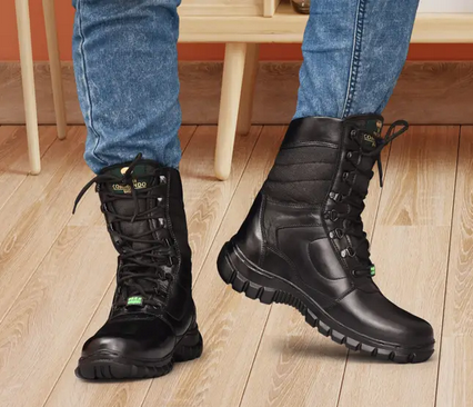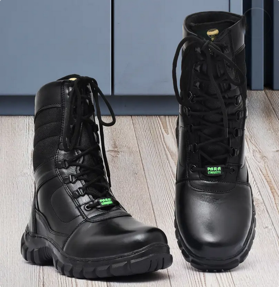 Name : Genuine Leater Long Army Boot Lace Up For Men (Black) Material : Leather Sole Material : Rubber Pattern : Solid Fastening & Back Detail : Lace Up Net Quantity (N) : 1
